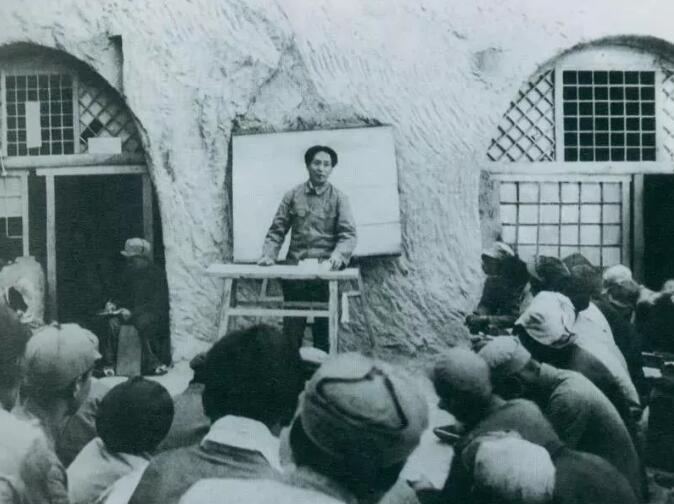 1938年4月,毛澤東在魯迅藝術(shù)學(xué)院講演。