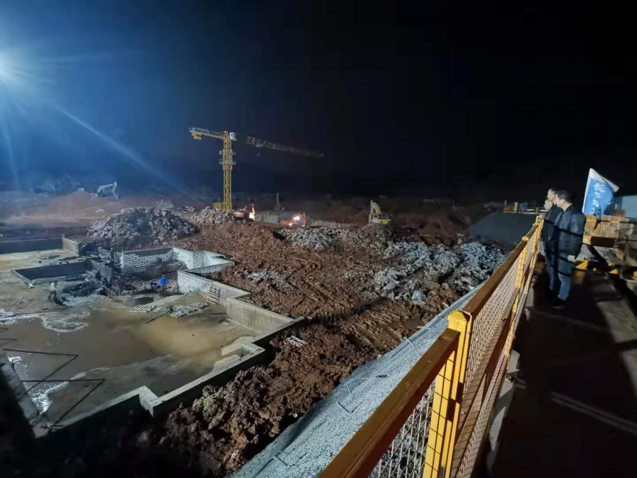 4月11日晚8點(diǎn),華新小鎮(zhèn)項(xiàng)目現(xiàn)場(chǎng)機(jī)械轟鳴、人聲鼎沸,工地上下盡是忙碌的身影。